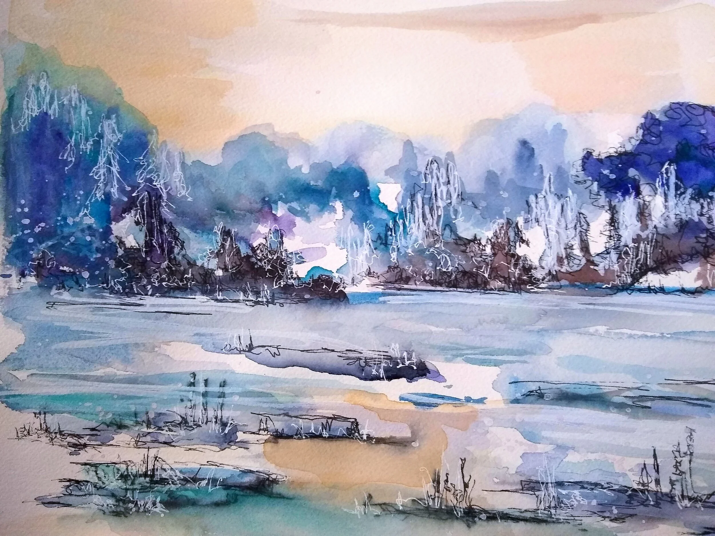 A peek at my experiments and process, sketching in pen and ink, watercolor, and gouache.